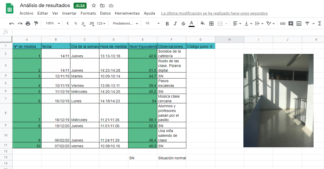- Se realizaron tablas con los datos de cada punto: fecha, día, hora y descripción de la situación del lugar de medida en el momento de la misma.