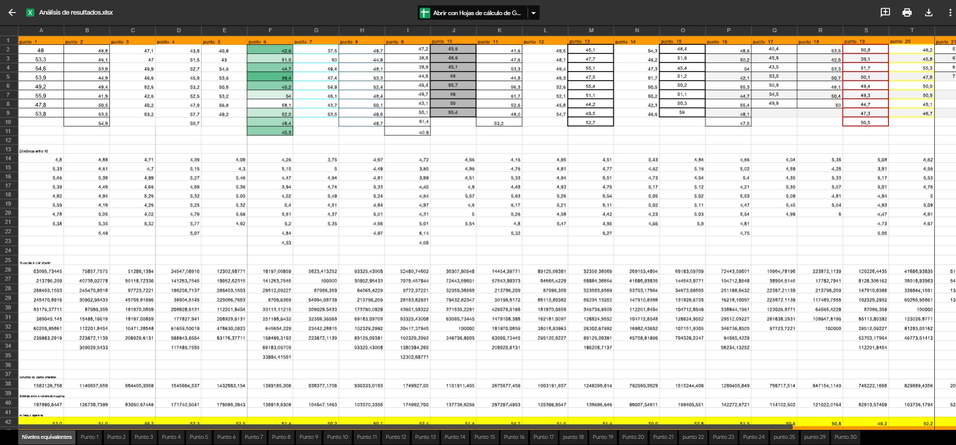 Para cada uno de los puntos de medida, a través de una hoja de cálculo: