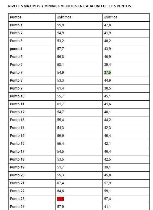 En este informe para cada uno de los puntos medidos se indicaba lo siguiente: